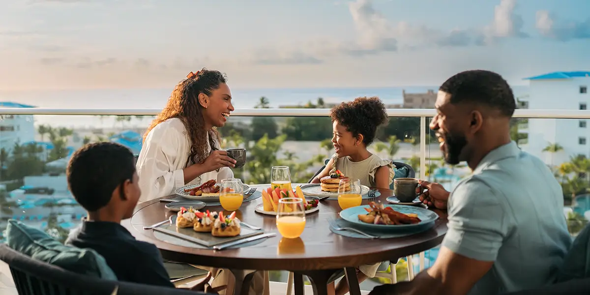 A favourite scene was breakfast room service, on a balcony at sunrise, overlooking calm ocean water. The models brought great energy as they enjoyed a stack of pancakes from the hotel’s culinary team.